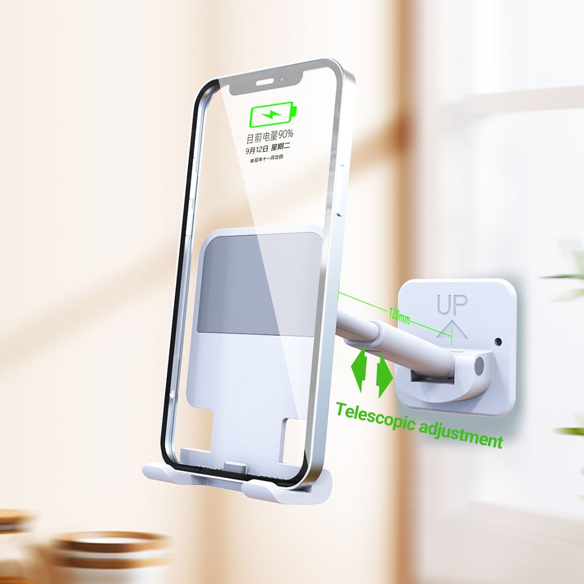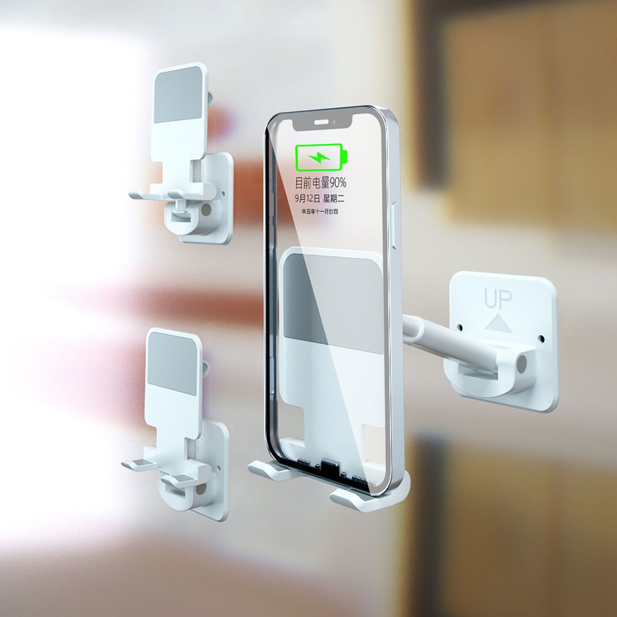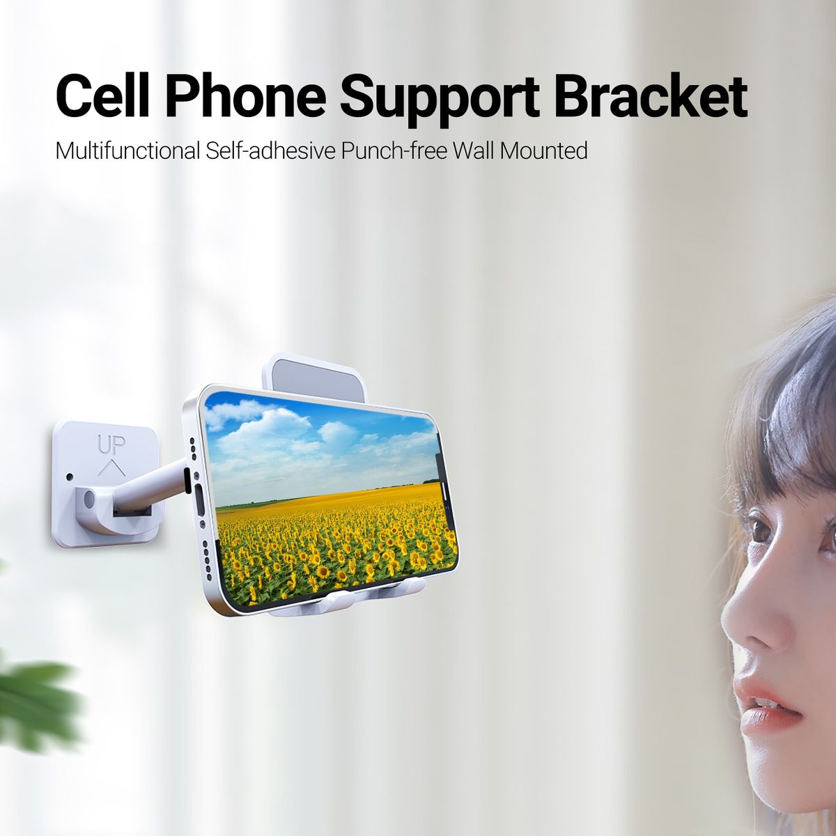 With strong self-adhesive, punch-free and foldable design, the mobile phone holder is easy to stick firmly without leaving trace and convenient to carry.