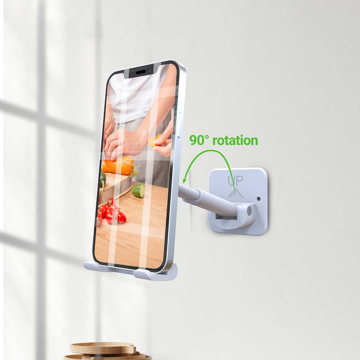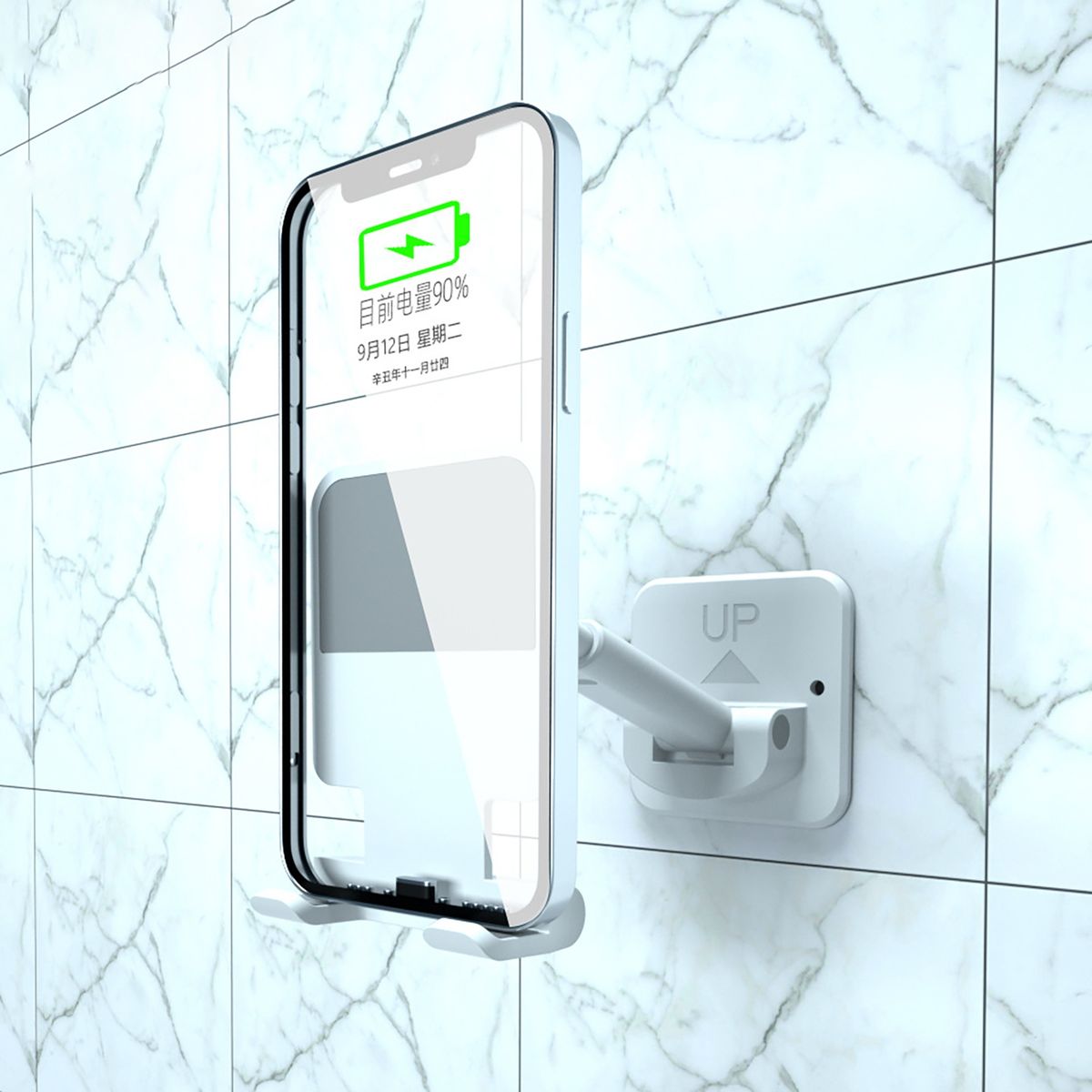 Mobile phone holder can be used in kitchen/bathroom/washroom/dressing room/smooth wall. etc.