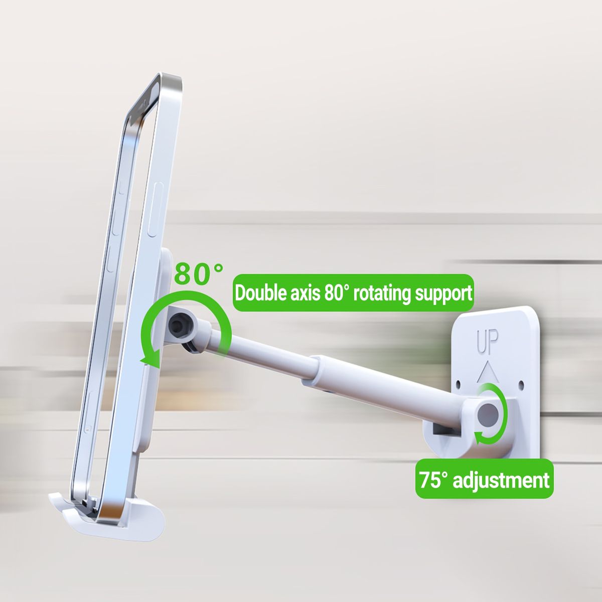 The mobile phone holder uses ergonomic and 90-degree rotation double shaft design, which can be adjusted to a comfortable viewing angle.
