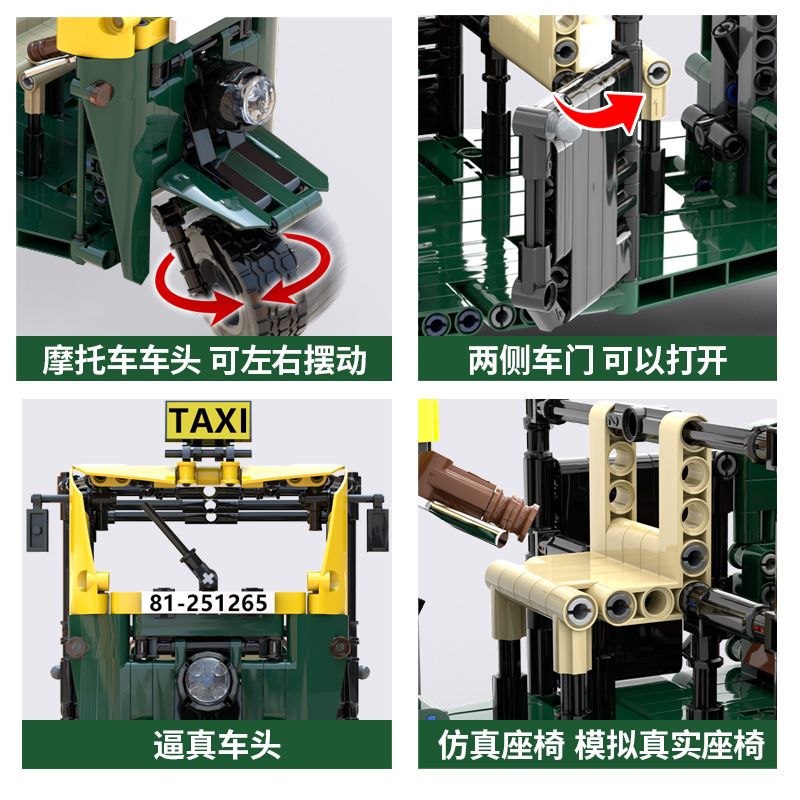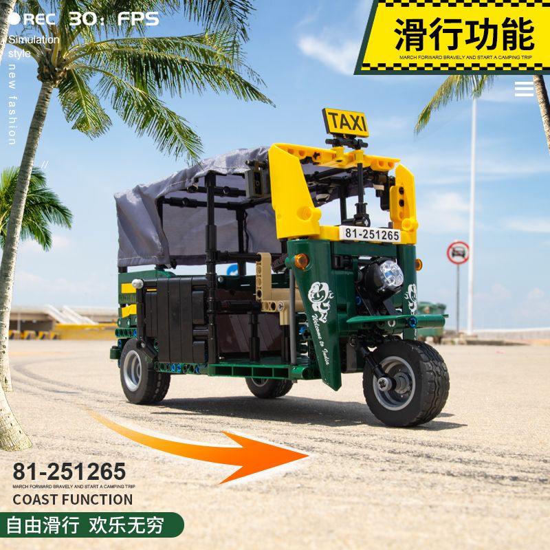 1* MOC City Creative Technique Taxi Tricycle Motorcycle Block Set