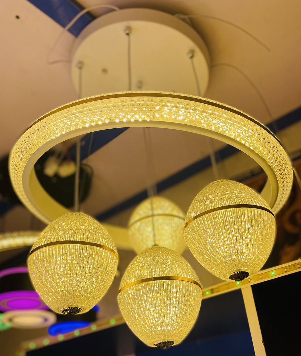 Good quality ceiling light for your home and office. Which gives a very attractive look? This chandelier gives warm light through its bulbs included with the chandelier. Change the room atmosphere with this grand chandelier. Great for entry ways, dining rooms, and bedrooms, this glamorous chandelier light is made of glittering hanging clear . Featuring an alluring curved design, this fixture will warm your home