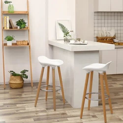Buy Modern Abs Plastic Bar Stools With Strong Wood Legs - Set Of 2- White in Nigeria