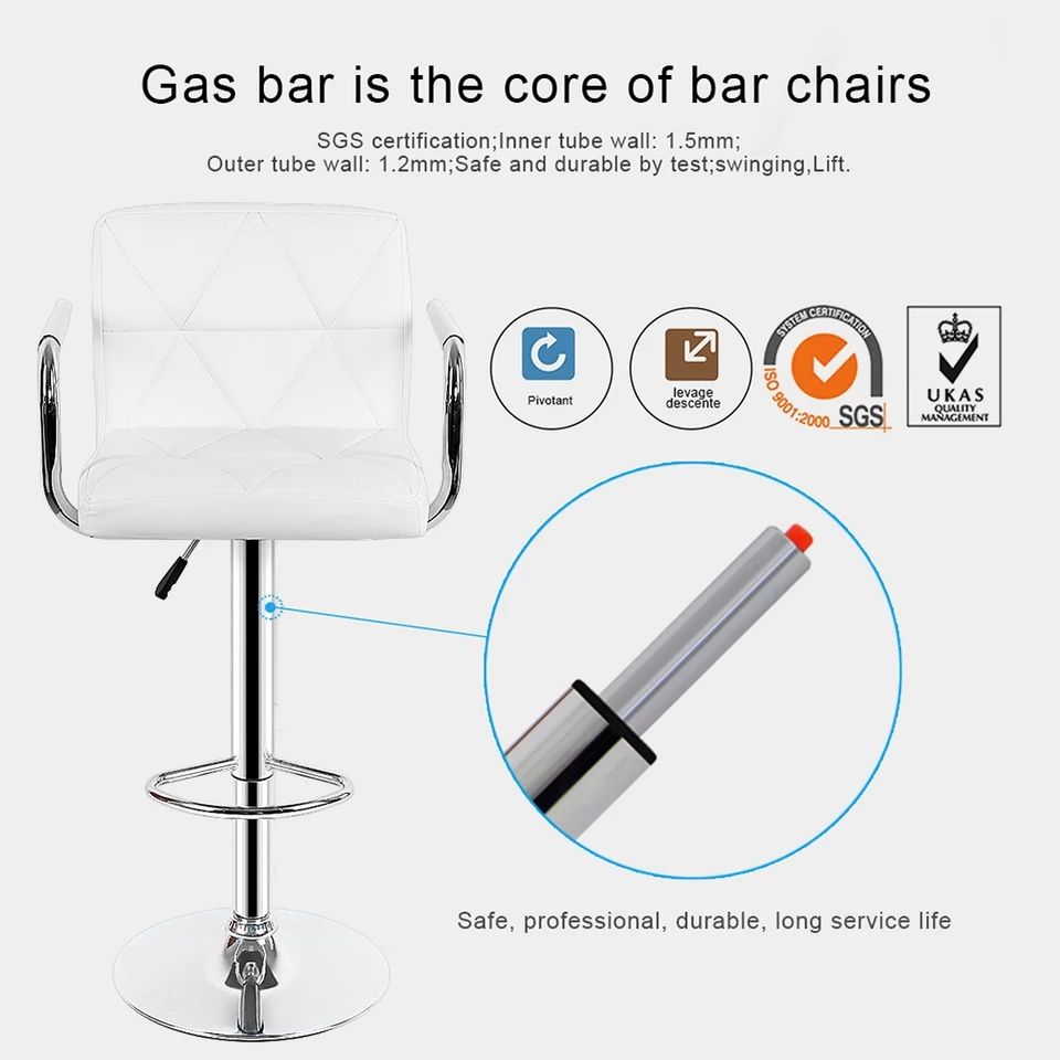 Modern Adjustable Leather Bar Chair with Armrests