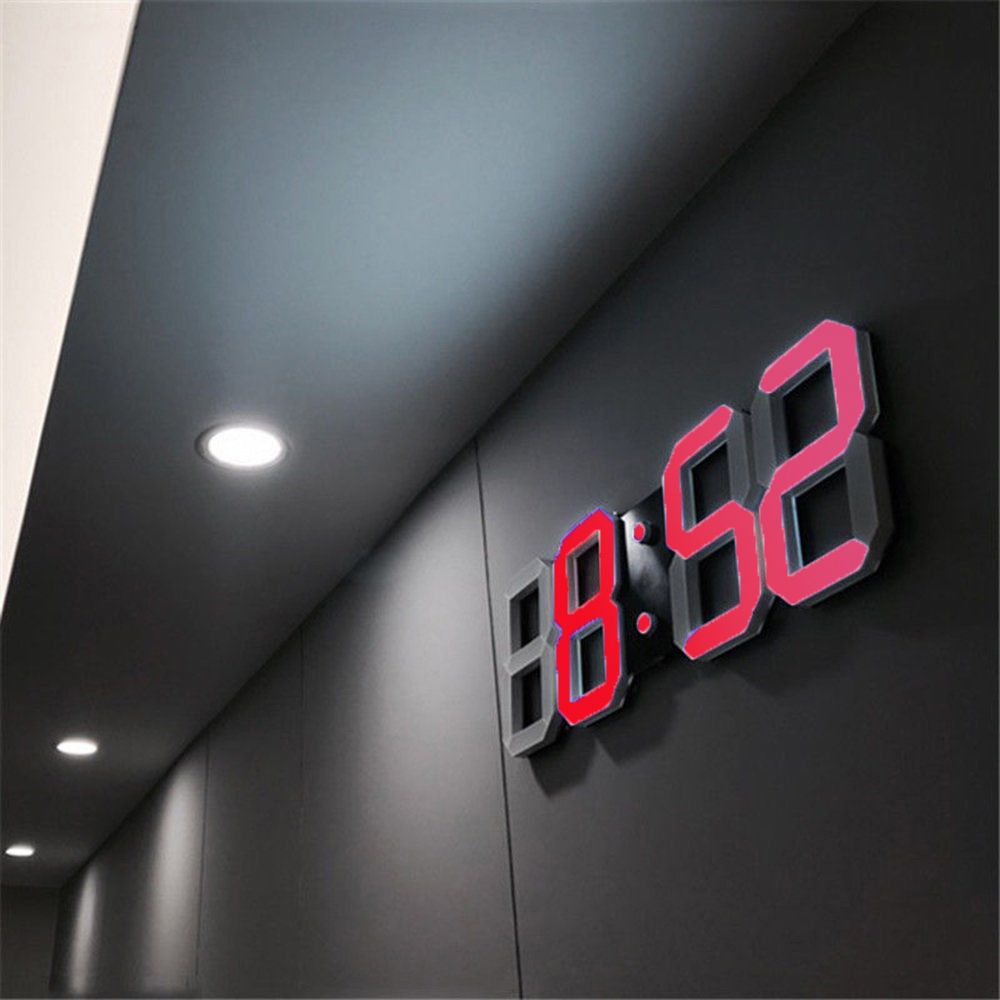 3D Modern Digital LED Table Desk Wall Alarm Clock-Black&Blue