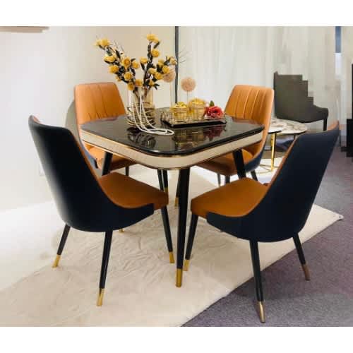 Buy Modern Marble Square Dinning Table And 4 Leather Chairs in Nigeria