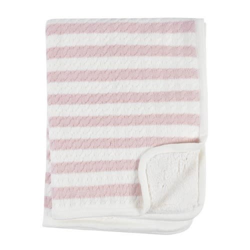 Buy Modern Moments Infant Baby Boy Or Girl Cable Knit Blanket With Sherpa - Pink Stripes in Nigeria