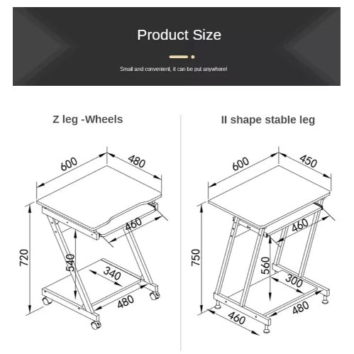 - Compact Storage: This small laptop table comes with a clear tabletop, smooth pull-out keyboard tray and substantial shelves at the bottom. Fits perfectly in any workspace and allows you to store Monitors, computers, Office Supplies, and more.