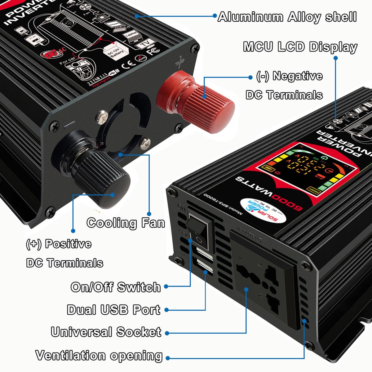 [LCD Display Screen]The smart display can know the working status of the inverter and various operating parameters in real-time. For example input voltage, output voltage, output frequency, battery , load, etc.