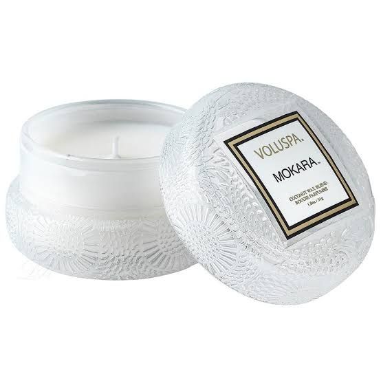 Voluspa candles are hand-poured in the United States from sustainable, ecologically sound, pesticide-free manufacturing. The candle features a proprietary coconut wax blend and a 100% cotton wick.