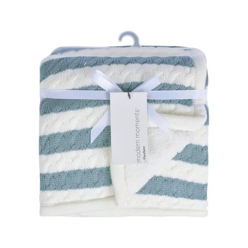 Modern Moments Infant Baby Boy Or Girl Cable Knit Blanket With Sherpa, Gray Stripes