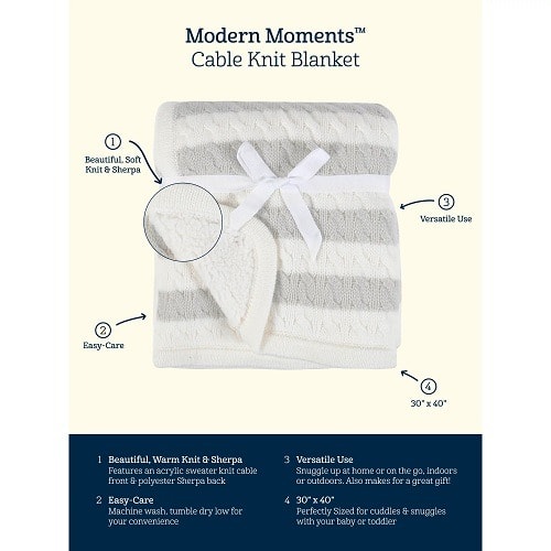 Modern Moments by Gerber Baby Boys Gray Cable Knit Blanket
