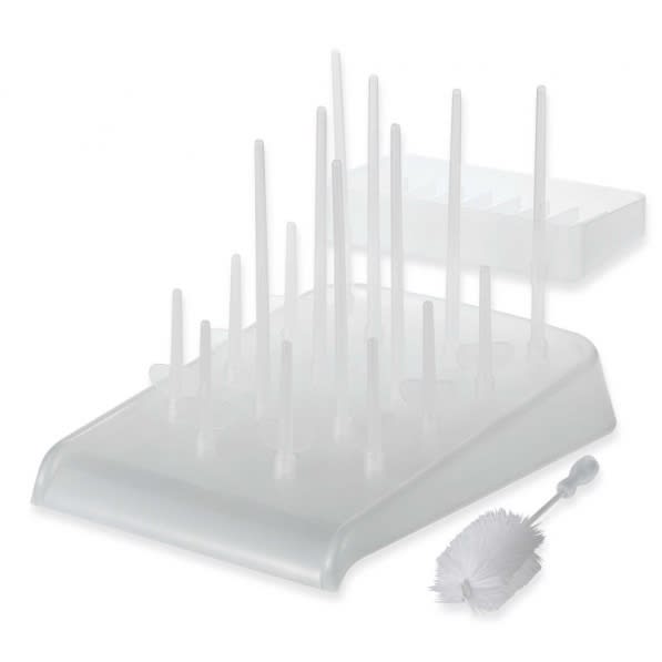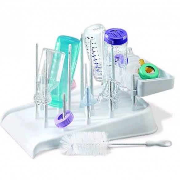About this itemThe Mommy's Helper Drain-N-Dry Bottle Rack is a sanitary way to dry baby bottles, nipples, rings pacifiers and training cups. The baby bottle dry rack is designed in a way so that it ensures that the excess water is drained out. It has an angled tray that facilitates water drainage. The Drain-N-Dry bottle rack with a pegged tray keeps the bottle from toppling away. It comes along with bottle cleaning brush and an accessory drying rack for your convenience.Mommy's Helper Drain-N-Dry Bottle RackKeeps bottles organized and sanitary while dryingIncludes bottle brush and accessory drying rackPegged tray prevents bottles from topplingSpecificationsMulti Pack Indicator: NoShipping Weight (in pounds): 1.0Product in Inches (L x W x H): 12.0 x 9.0 x 8.5