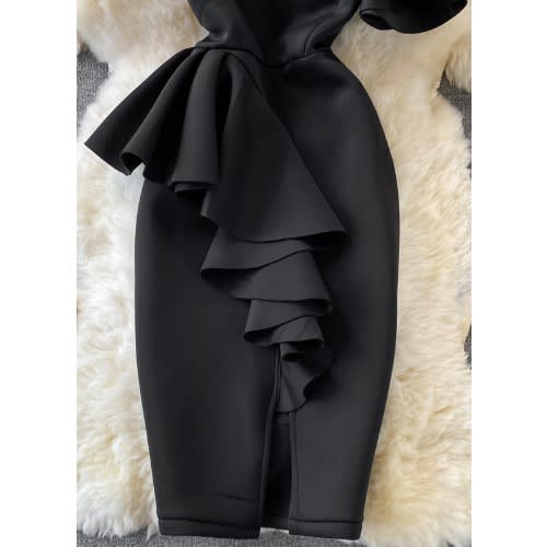 Black and Ash dinner dress. It comes in a tube umpire waist and flay bottom design. It is a long dress that can be used for dinner outings, weddings and most formal and informal occasions. It gives off elegant and sophisticated vibes and is an absolute head turner. It can be paired with different kinds of accessories.