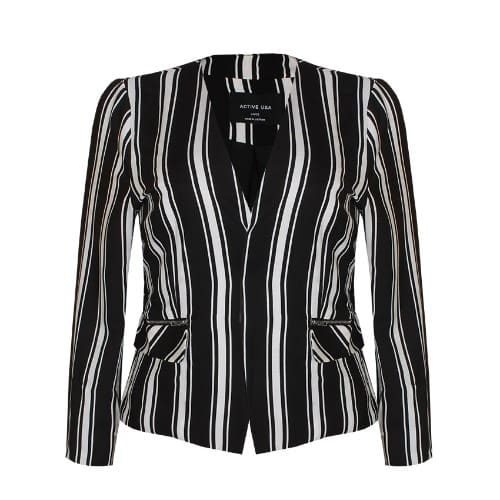 A classic black linen blend adds a stylish to your collection. With a double-breasted closure, this flattering notched collar jacket could be paired with pant or skirt and nice top, shirt or just a camisole. You are on the go to a winning day. & bull; Black colour & bull; Double-breasted jacket & bull; Long sleeves & bull; Notched collar & bull; Fully lined & bull; Double breasted closure
