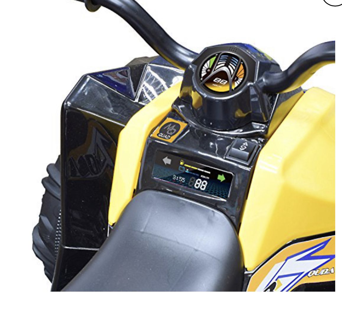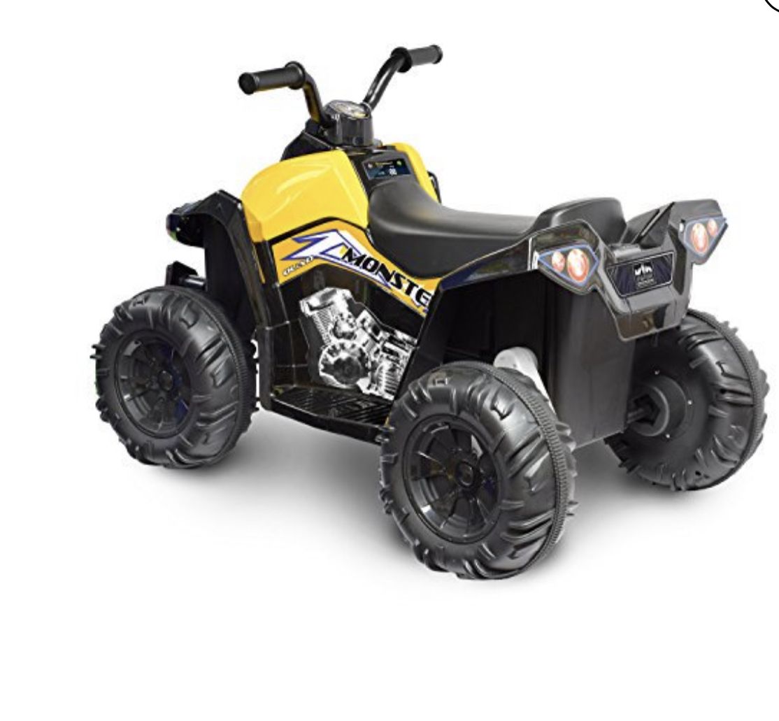 Kids, be ready for our Kid Motorz Monster Quad ride on toy features with forward and reverse gear. Our single child battery operated ride on car comes with 12V motors. Maximum load capacity 66 lbs. Product dimensions 33.66” x 22.83” x 23.23”. Made in China. Ages 3 & up. Single rider comes with a 12V rechargeable lead-acid battery. It give your child a 50-60 MINUTES unforgettable experience per charge. Finishing with detail decal sticker. Your little one will love cruising around in this awesome Monster Quad. Forward and reverse gear switch located at front panel. It will be sure to provide all the fun and entertainment. Pick our Monster Quad, choose from three glamorous color selections. It will entertain your child while keeping him/her safe at the maximum speed of 3.0 miles-per-hour.Features: