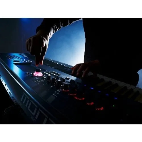 The Yamaha Montage 8 is a 88-key workstation synthesizer that combines elements of the DX- and Motif-series keyboards. Employing Motion-Control Synthesis, the Montage combines two sound engines: AWM2 (synthesis- and sample-based sounds) and FM-X (frequency modulation synthesis.)