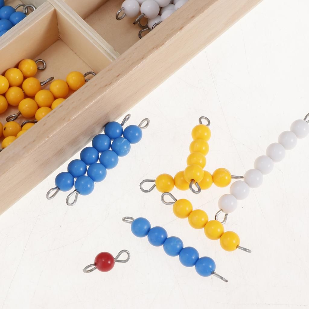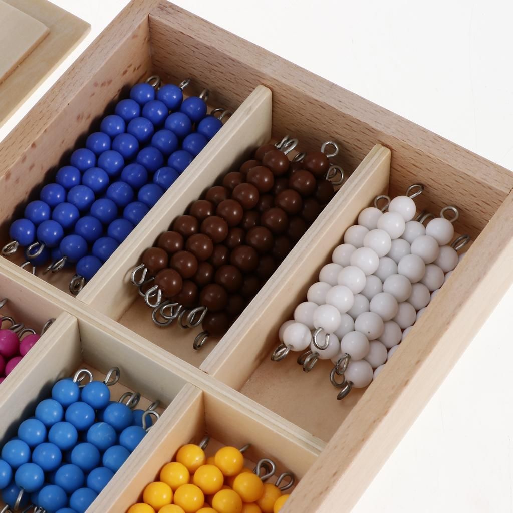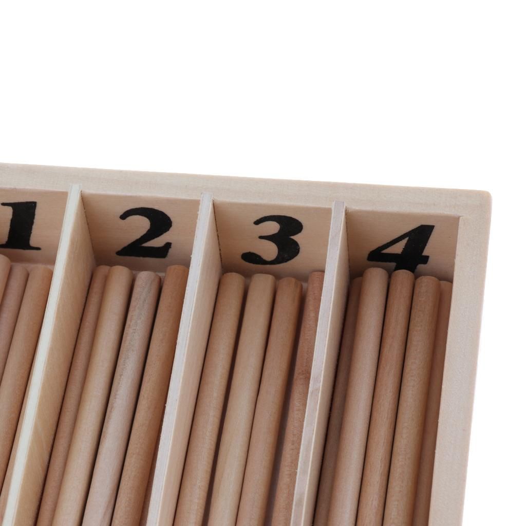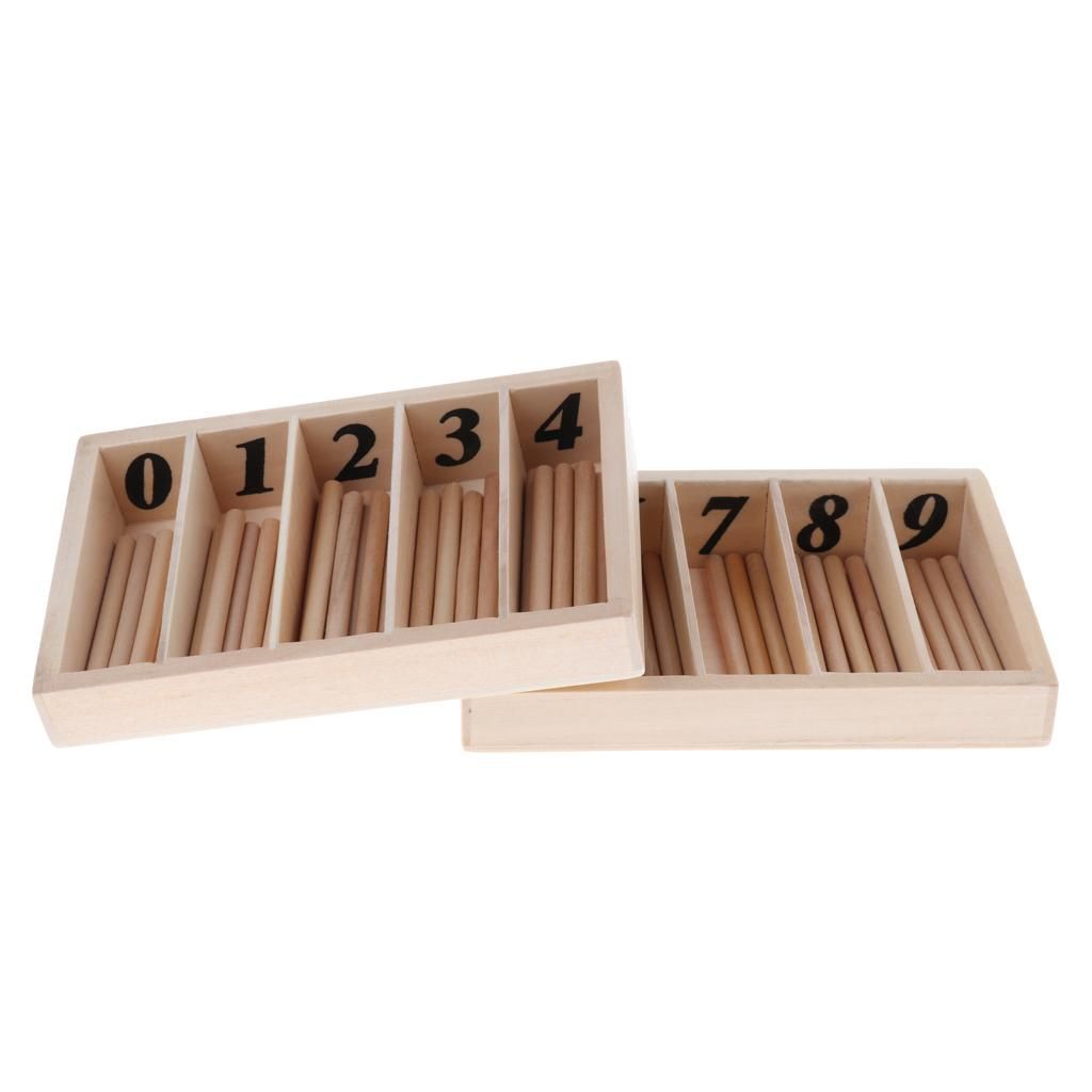 Wooden box marks numbers 1-10 inside & Each color stands for diffrent numbers 1-9, it is an useful toy to make teaching fun.