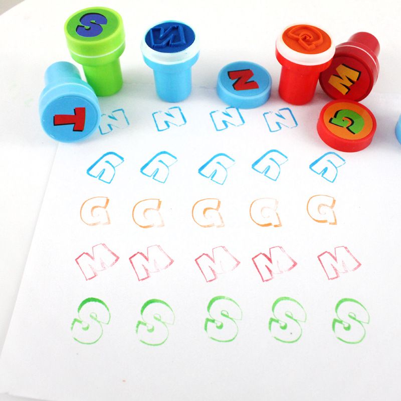 - Each stamp has its own ink, no additional inkpad is needed and each stamp has different color. Just remove the stamp cover and apply little pressure on the paper as you stamp will create a specific letter