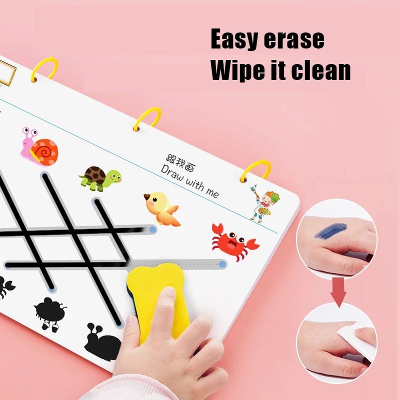 1X Montessori Educational Toys for Children Magic Book Learn to Write Workbook Practice for Kids Pen Control Line Tracing Letters