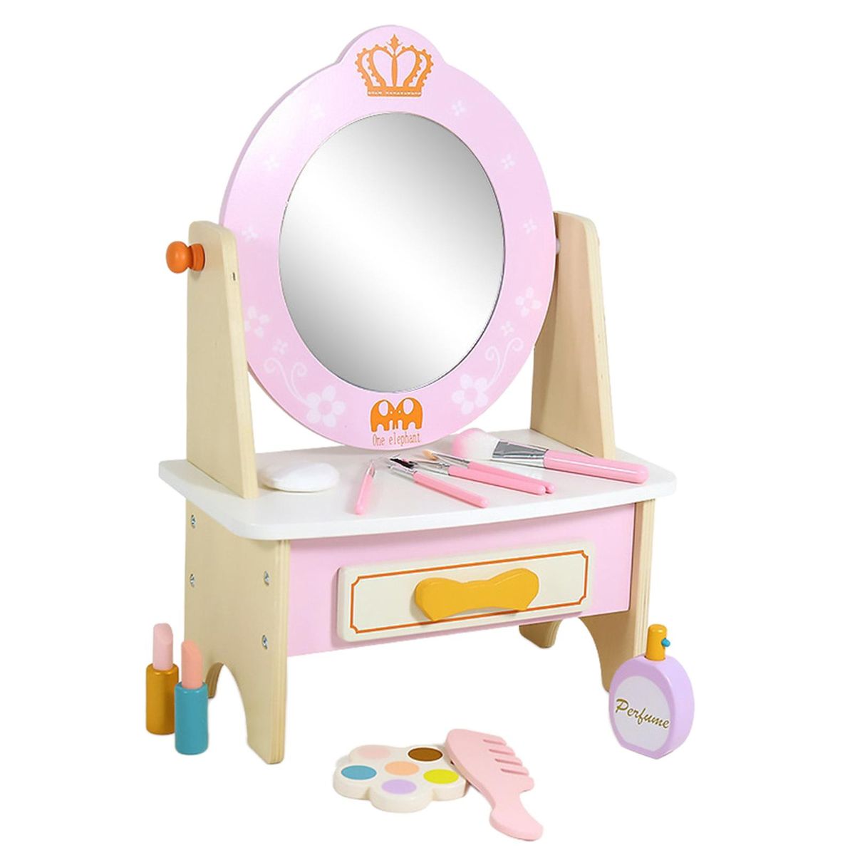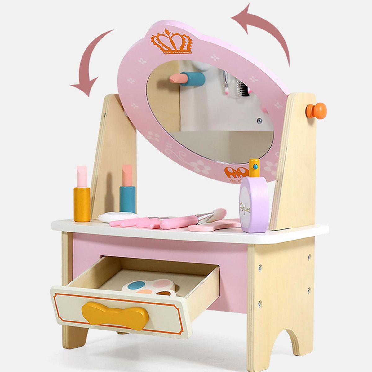 1X Montessori Princess Vanity Table with Makeup Accessories Kids Dress up Table Toy for Girls