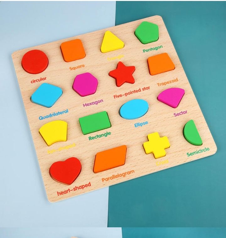 Colorful Design: 3D colorful geometric shape match design to stimulate kids' interests, encourage and enhance brain development, exercise and stimulate their hand & eye coordination.Selected Qualification Materials: Made of qualified solid hard wood, polished smooth edges as well as wear-resistance,non-toxic water painted, safe friendly to your kids.Stimulation Toy: Insert panel board well stimulate children's desire to explore, the concept of teaching in fun to evoke kids' concentration, evoke their logical thinking and hand-on skills.Educational Training: With great educational training for kids,cultivate cognitive ability of alphabet letters/numbers/geometrical shapes, improve problem solving & math skills , shape matching and further brain development.Best Choice for Kids: Suitable for kids as birthday gifts, Christmas gifts, and encourage them free to explore their small world, also an awesome parent-child interaction toy.