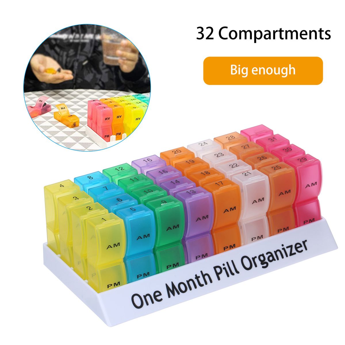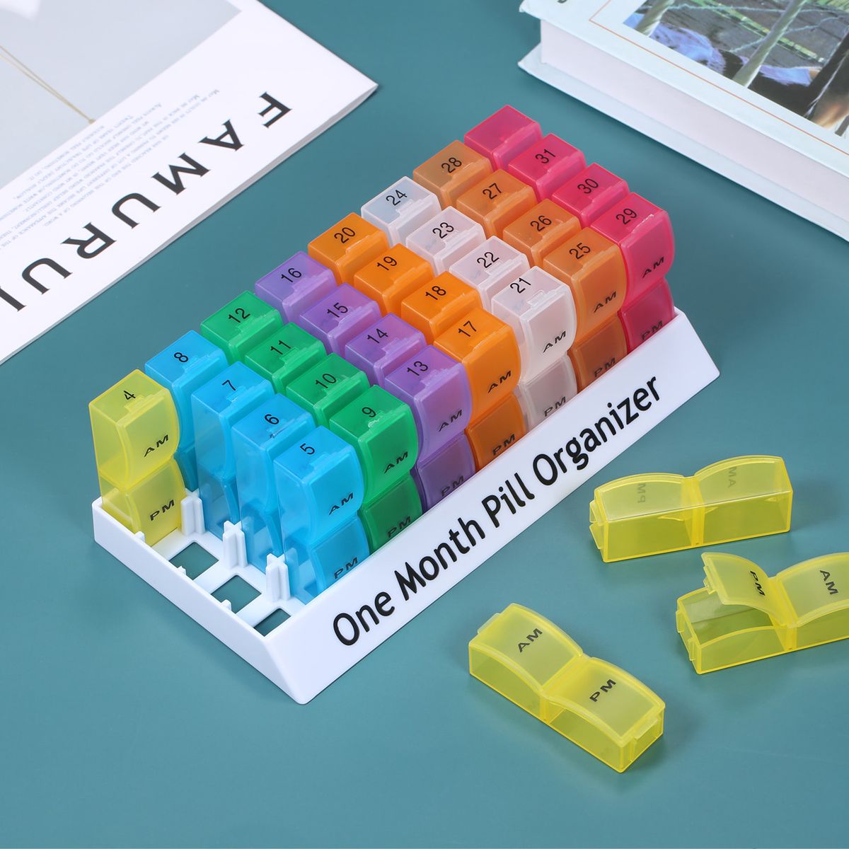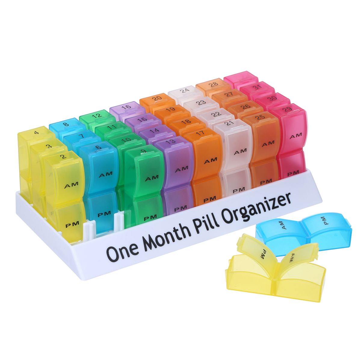Monthly pills sorter helps you to easily plan and distribute your daily doses.