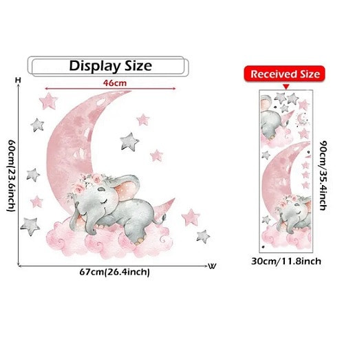 Buy Moon Sleeping Elephant With Garland Wall Sticker - 30*90cm - Pink in Nigeria