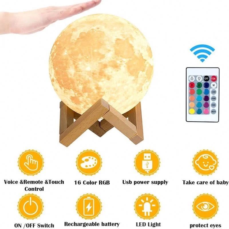 With the included remote control, you have complete control over the lamp's functionality. You can switch between different color shades of light emitted by the lamp, allowing you to customize the ambiance to suit your preferences. Whether you prefer a warm, cozy glow or a cool, calming hue, the Moonlight Nightlight Bedside Lamp offers a range of options to create the perfect atmosphere for your nighttime activities.