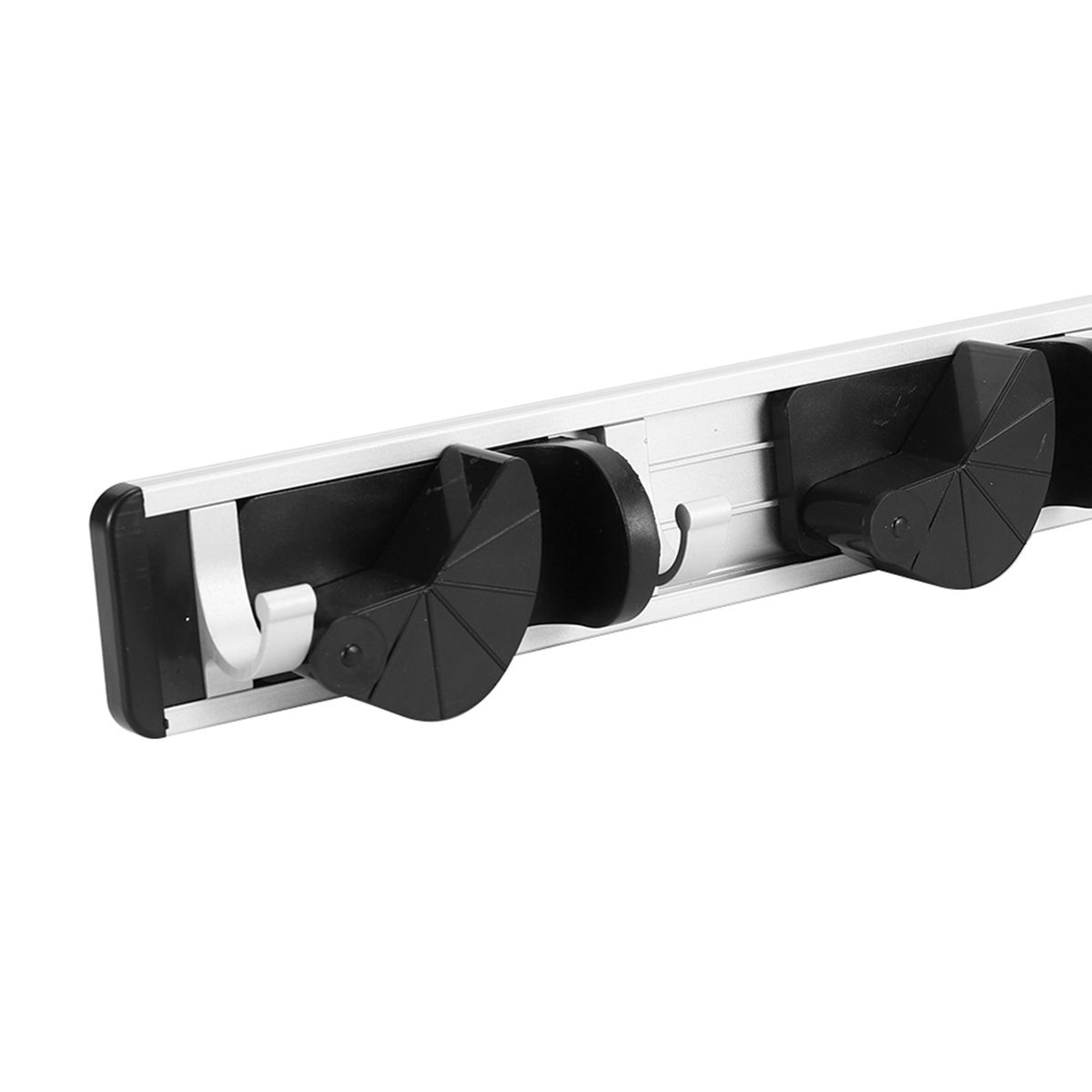 Anti-slip guarantee: 4 spring-loaded grooves with rubber grips, which can be tightly fixed on the tool handle to make it firmly fixed. The total load-bearing capacity of the 4 hangers is up to 40 pounds. You can use this rack to store all items such as brooms and mops, gardening and hardware tools.