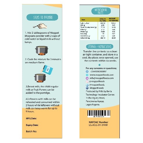 Nutribom baby cereal is a good cereal for baby from 6 months upward it contains all the essential nutrients they need daily. It is energy dense. It can be prepared with warm water and add your milk to balance the meal.