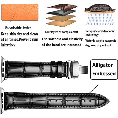 Buy Moran Leather Bands Compatible With IWatch Band 42, 44, And 45mm - Black in Nigeria