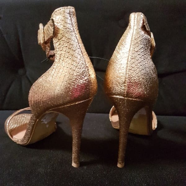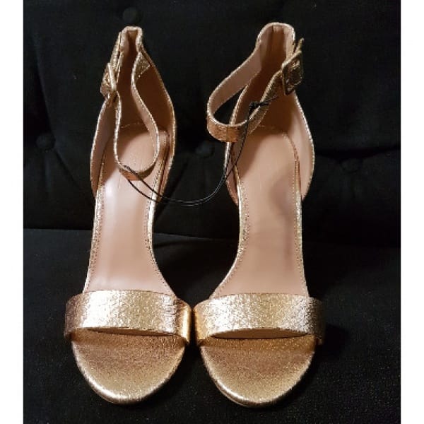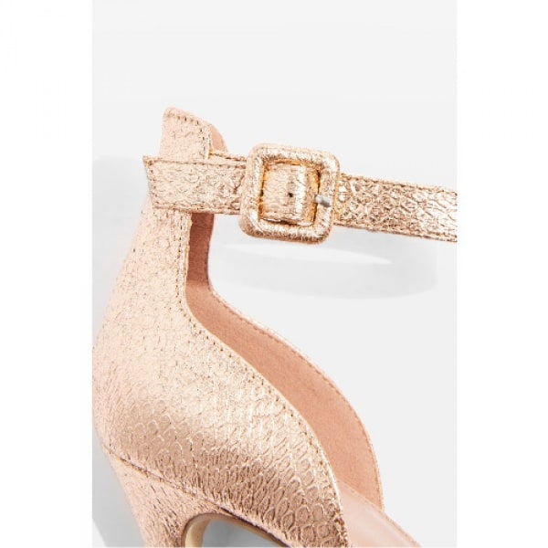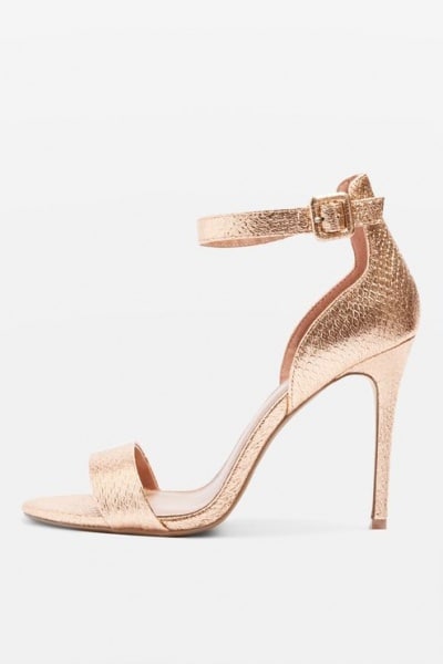 A pair of stylish strappy heels is a must-have for every fashionista's wardrobe. In an exquisite rose gold finish, these two part sandals will add a touch of elegance to your evening and special occasion outfits.