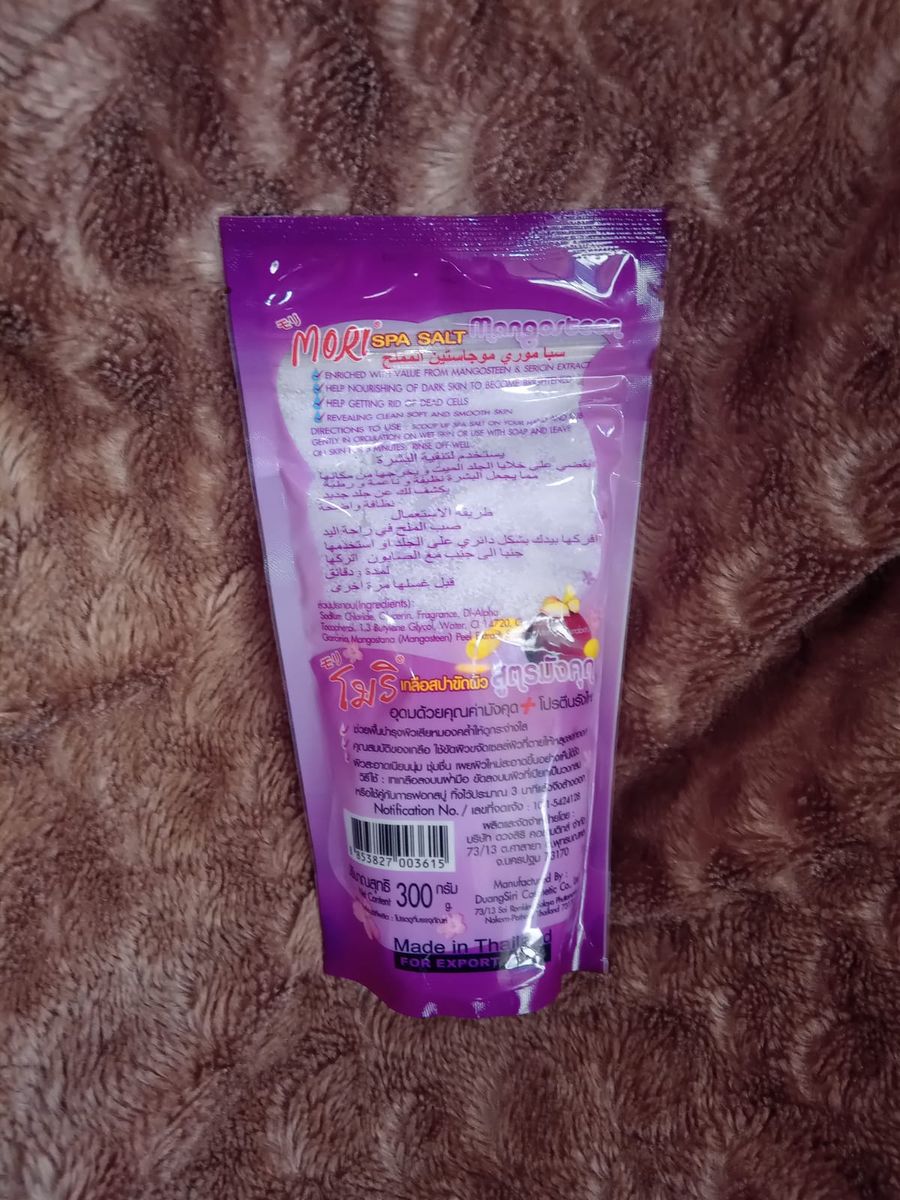 Vitamin B3Helos exfoliate surface skin cells to reveal newer and younger looking skin and address skin discolorations.Collagen Improves skin texture,provides firmness to the skin and smoothes wrinkles.Vitamin EIs an excellent antioxidants,to protect cells against free radical damage,also can slow the aging process.[ Direction ]Pour small amount of spa salt on wet body and rub gently in circular motion for about 3 minutes. Rinse off with clean water and bathing regularly.