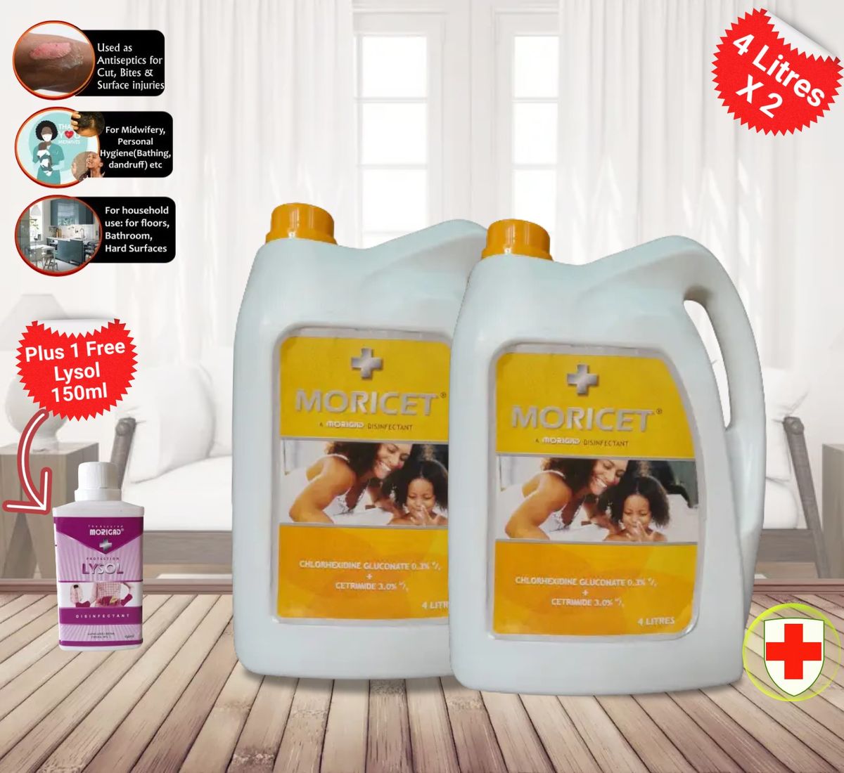 2 x 4 Litres Moricet AntisepticPlus 1 free Lysol 150ml