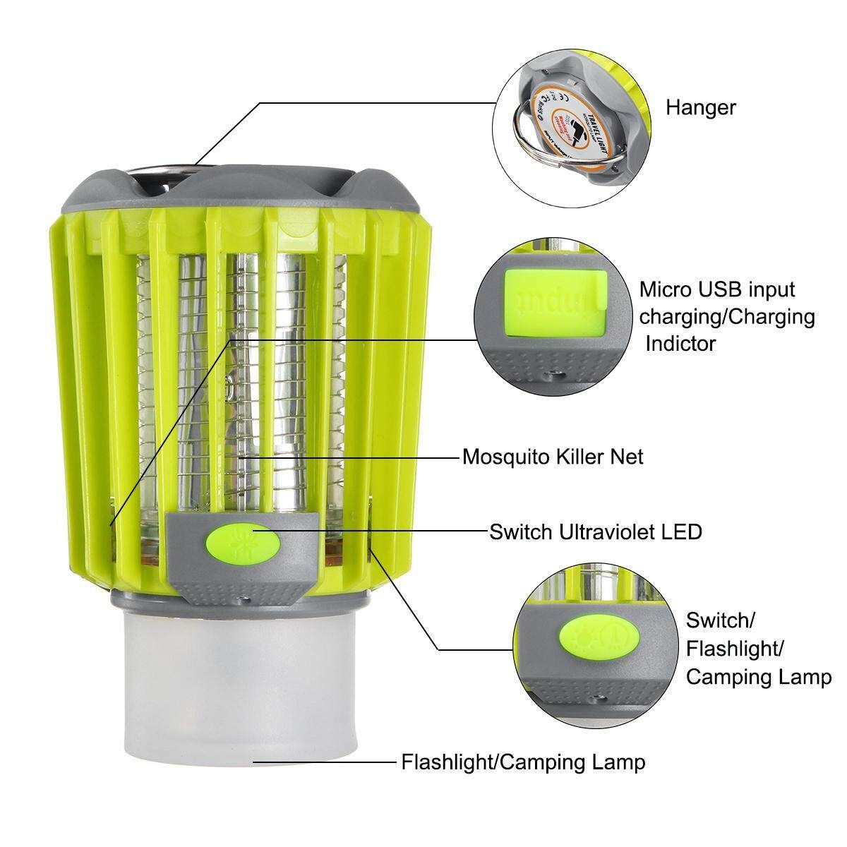 11.Functions and Features: Mosquito Killer/Flashlight/ Camping Lamp/Rainproof IP67