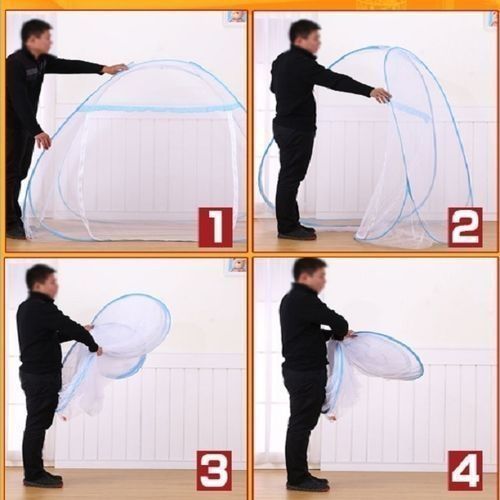 Fold-able Mosquito Net Tent helps keep you and your loved ones from mosquito, insects and dust particles all through the night/day. It is also very handy and useful for camping and outdoor events.Prevention of malaria is now attainable with this fold-able mosquito net as mosquitoes have become resistant to most insecticides, hence having this Mosquito Net makes a good night rest possible without having to endure the torture of mosquito bites or the annoying buzz. Just zip and get into the tent and zip out mosquitoes from the inside.This mosquito net is made for the bigger sized beds