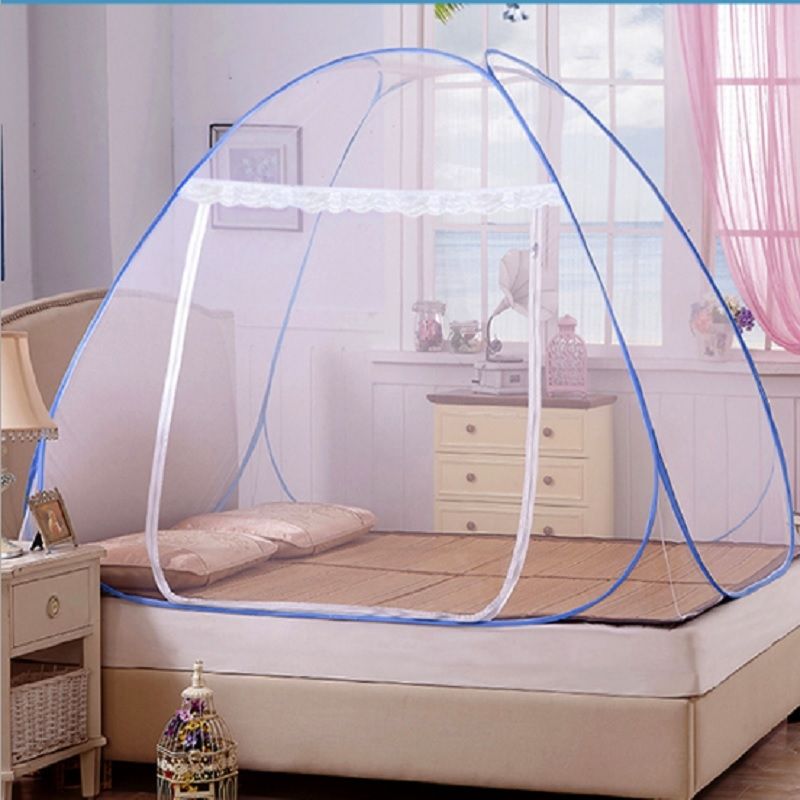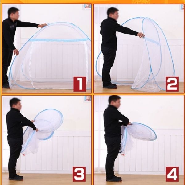 This Fold-able Mosquito Net Tent helps keep you and your loved ones from mosquito, insects and dust particles all through the night/day. It is also very handy and useful for camping and outdoor events.Prevention of malaria is now attainable with this fold-able mosquito net as mosquitoes have become resistant to most insecticides, hence having this Mosquito Net makes a good night rest possible without having to endure the torture of mosquito bites or the anonying buzz. Just zip and get into the tent and zip out mosquitoes from the inside.This mosquito net is made for the bigger sized beds (150cm x 200cm) and higher. The edges of this mosquito net can easily be tucked underneath the mattress and can be removed easily and folded every morning or left un-removed each day.This is a must have for every home that intends to keep malaria at bay. This Fold-able Mosquito Net is supported by flexible steel wires which are Self propping and gives it a sturdy structure when unfolded.