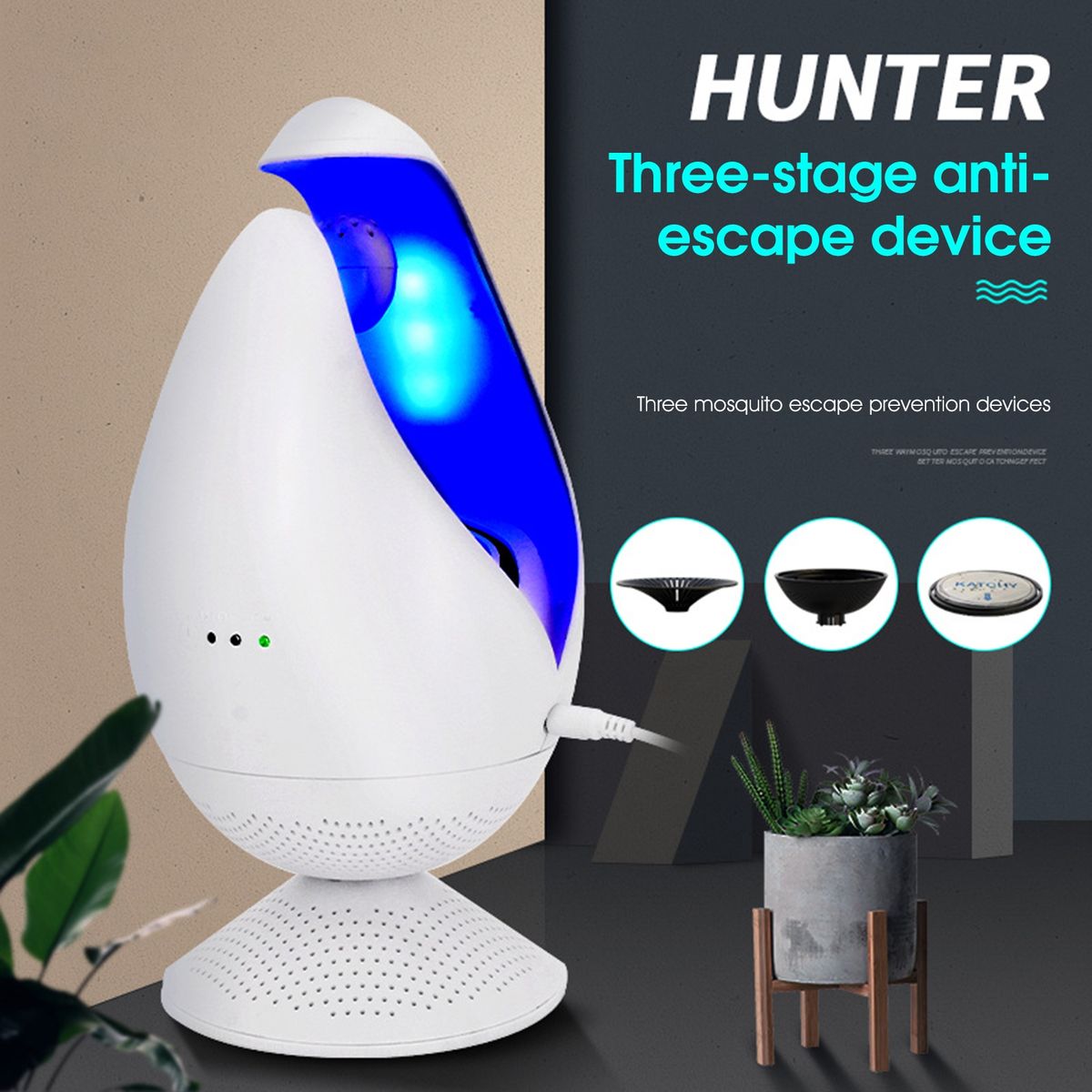The mosquito killer is marked by high speed fan design, so it can achieve large air volume and strong suction to catch the mosquitoes easily.
