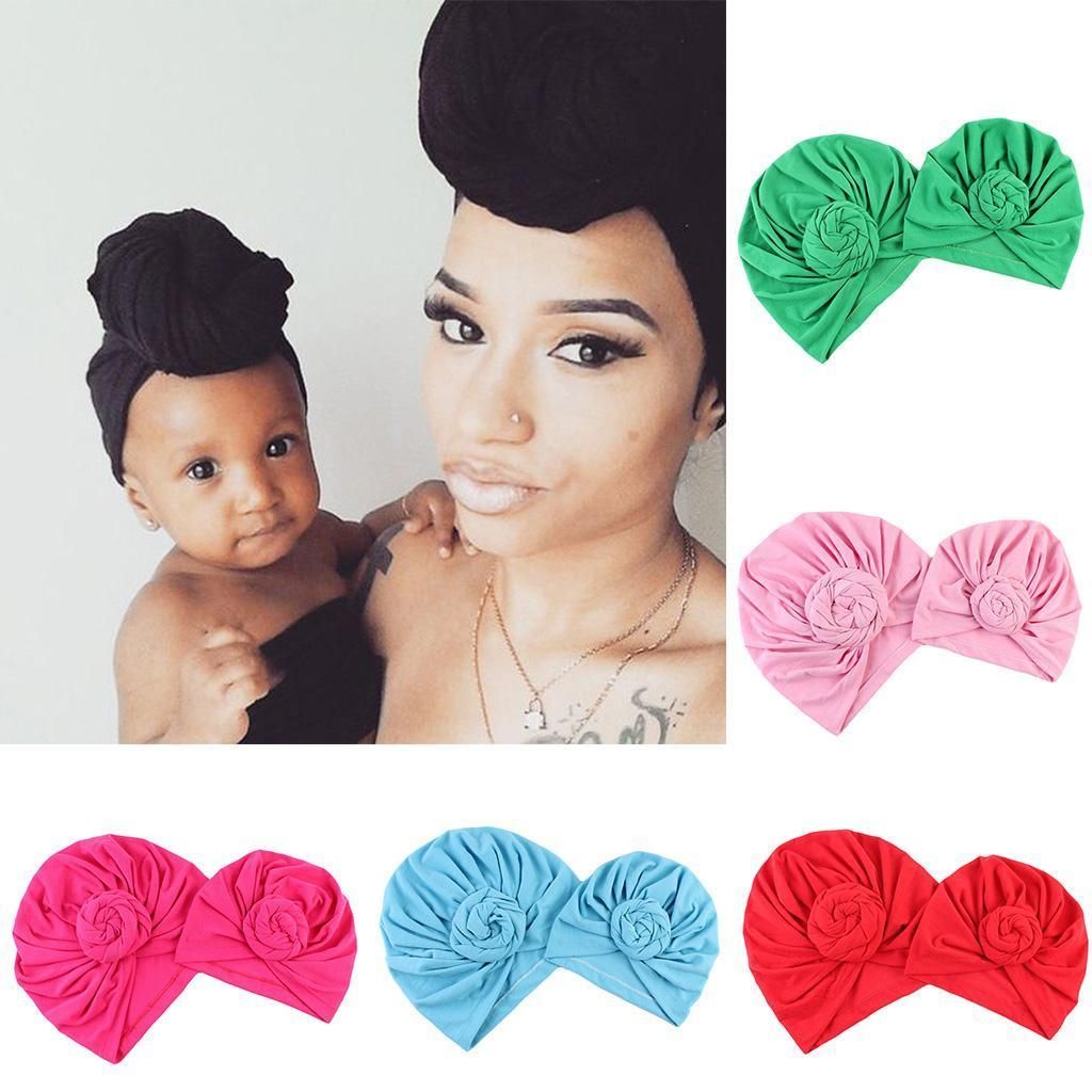 Colorful Womens Baby Kids Flower Knot Turban Indian