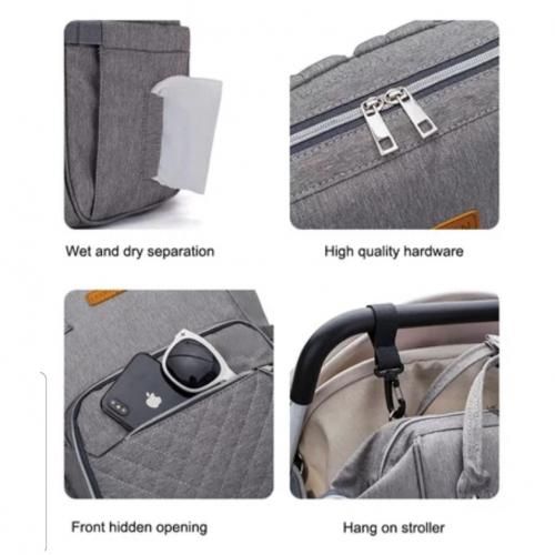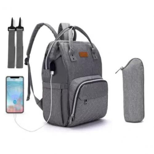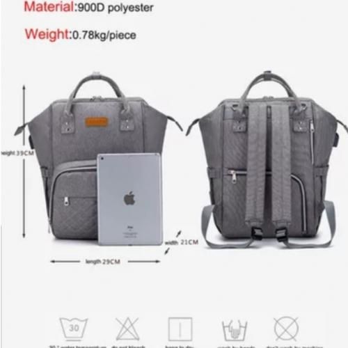 USB charging Port that connects with power bank in the inner pocket to keep your phone charged on the go.This bag has separate thermal compartments and also cater for your baby's needs such as diapers, wipes,food, feeding bottles, clothes including mothers personal effects, laptop and lots more! It can be used as Backpack ,tote bag and very easyt.o clean.