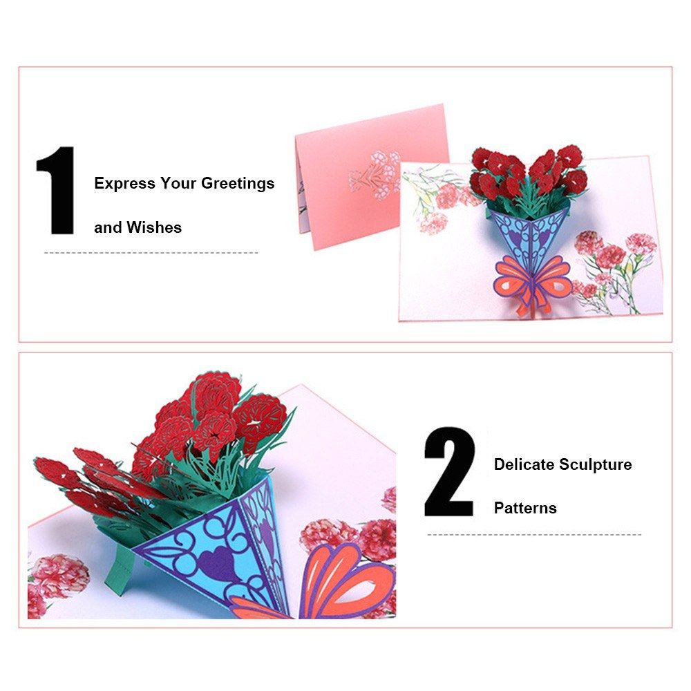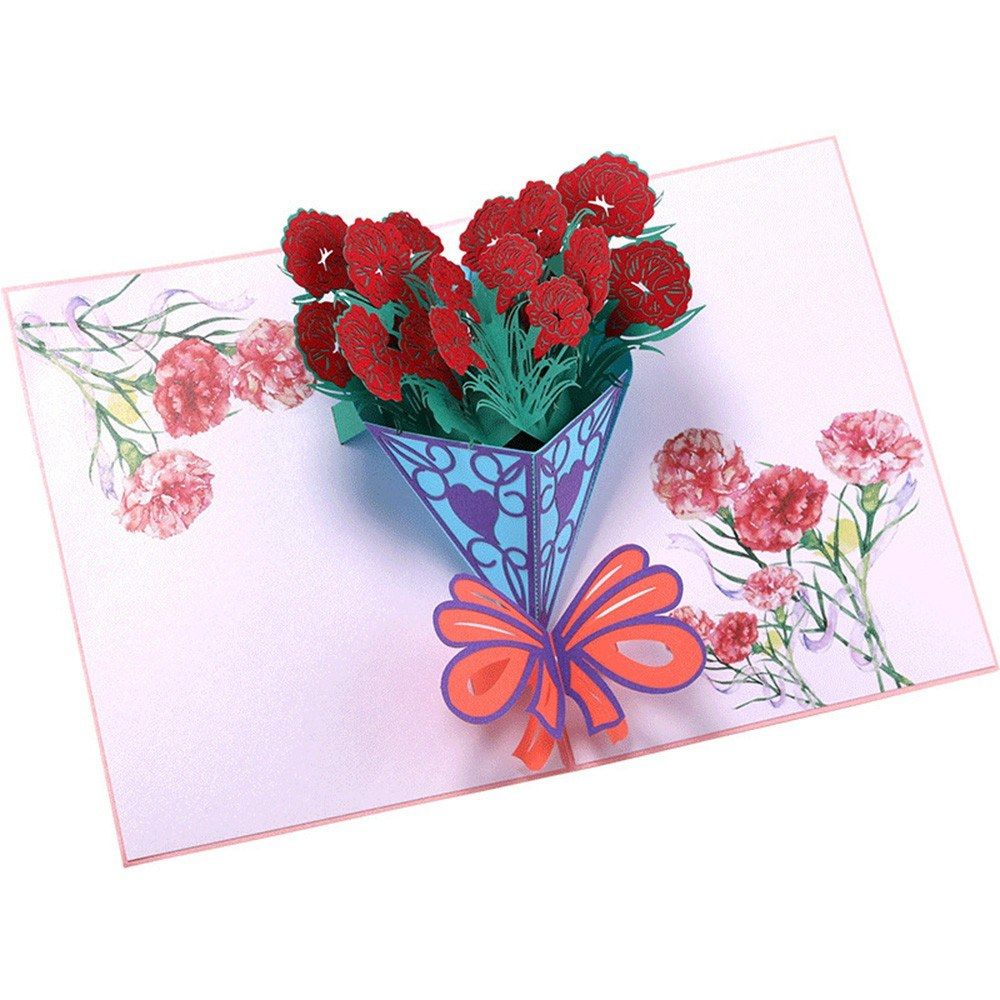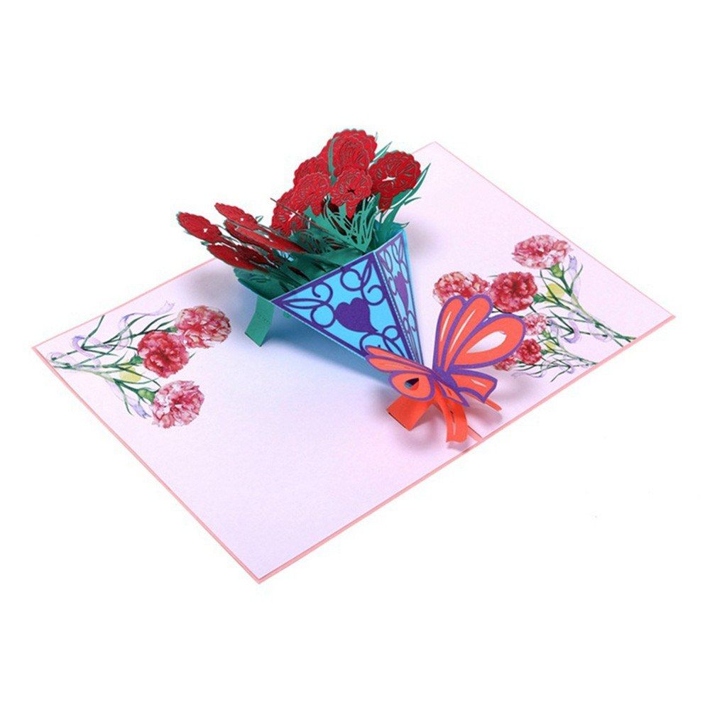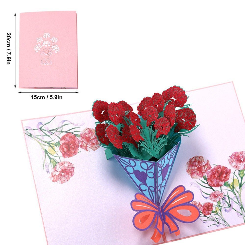 Mother\'s Day Greeting Card Paper 3D Carnation Pop Up Thanksgiving Day Creative Holiday Festival Wishes Blessing Gift Decoration Ornament