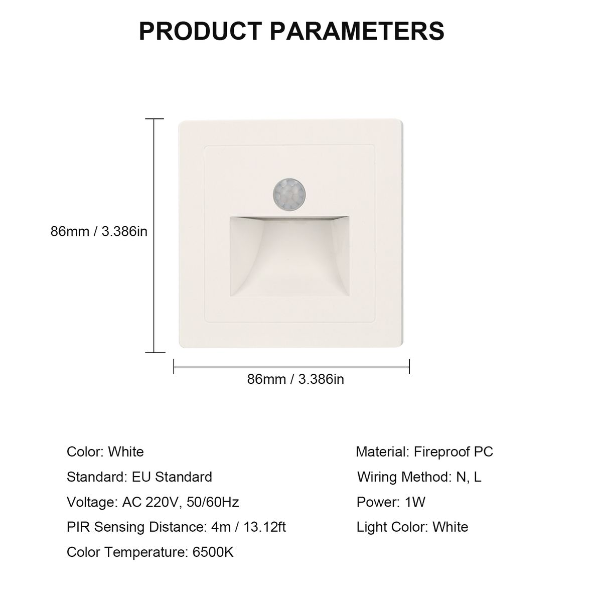PIR motion sensor stair light is made of fireproof PC material, which will auto turn on the light when it detects human activity in the range of 4m (13.12ft). It fits well with smart life in your modern house. A must have in smart life!