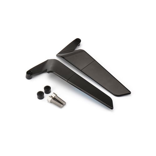 Out of the interface between racing experience and aeronautical inspiration comes a new mirror: an accessory specifically designed for supersport bikes. It consists of a fixed part, which allows the fitting directly to the fairing, and a movable part, which acts as a mirror glass holder. Thanks to a rotating system, by a simple movement, the two parts get alligned: in closed position the mirror becomes an aerodynamic foil.