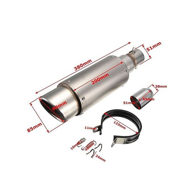 It is universal muffler can be used for dirt bike, street bike, scooter, ATV, Quad and any other bike with pipe diameter 38-51 mm.