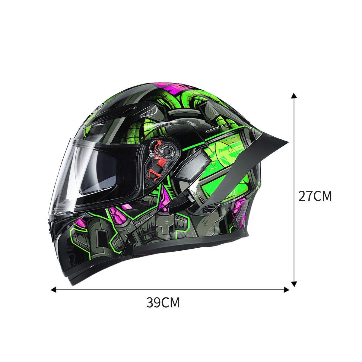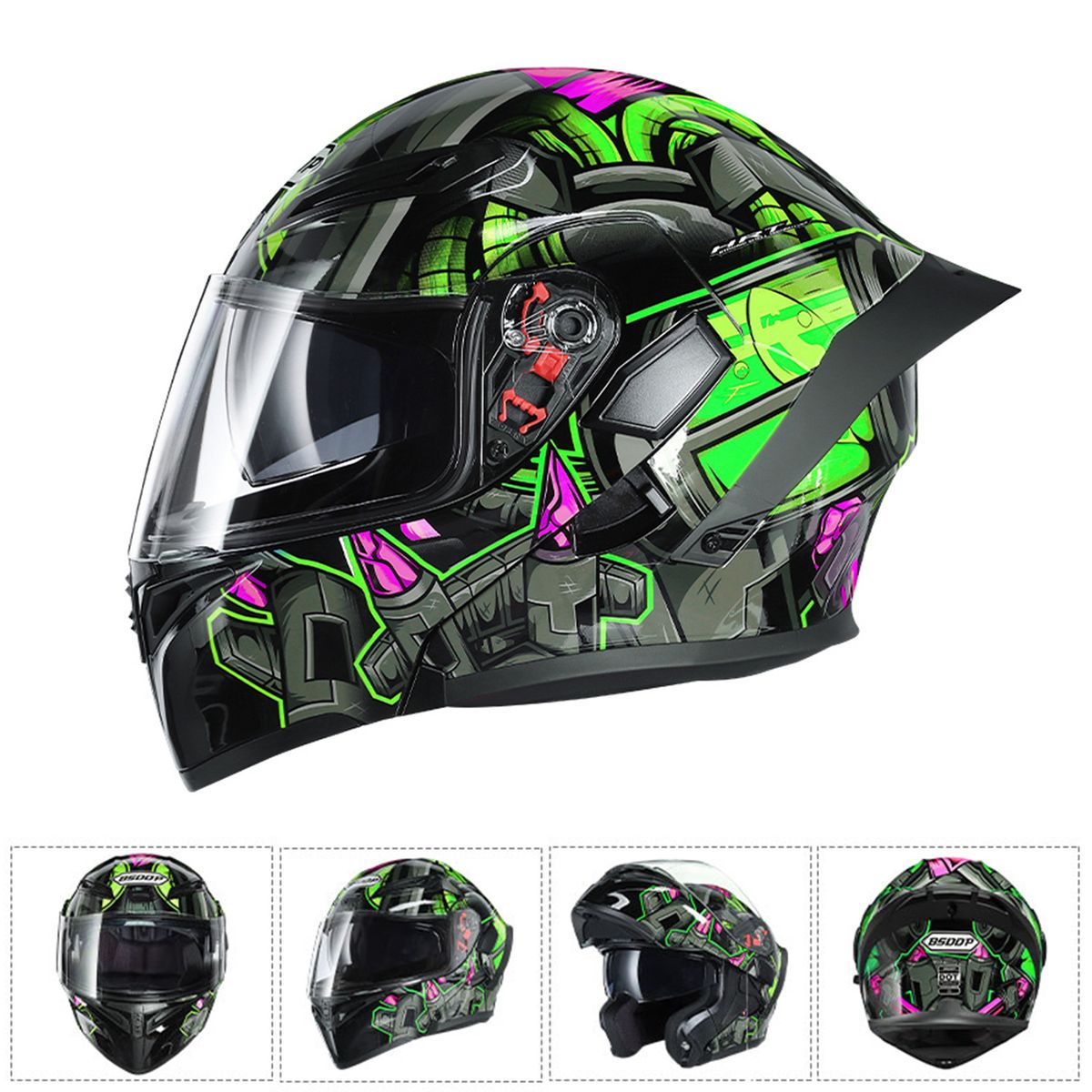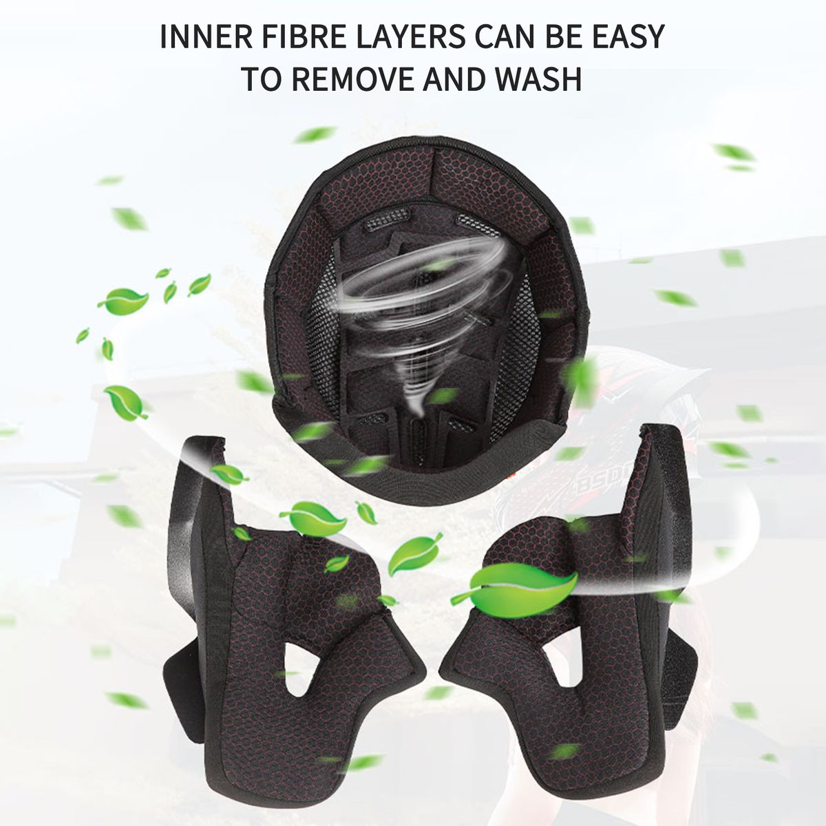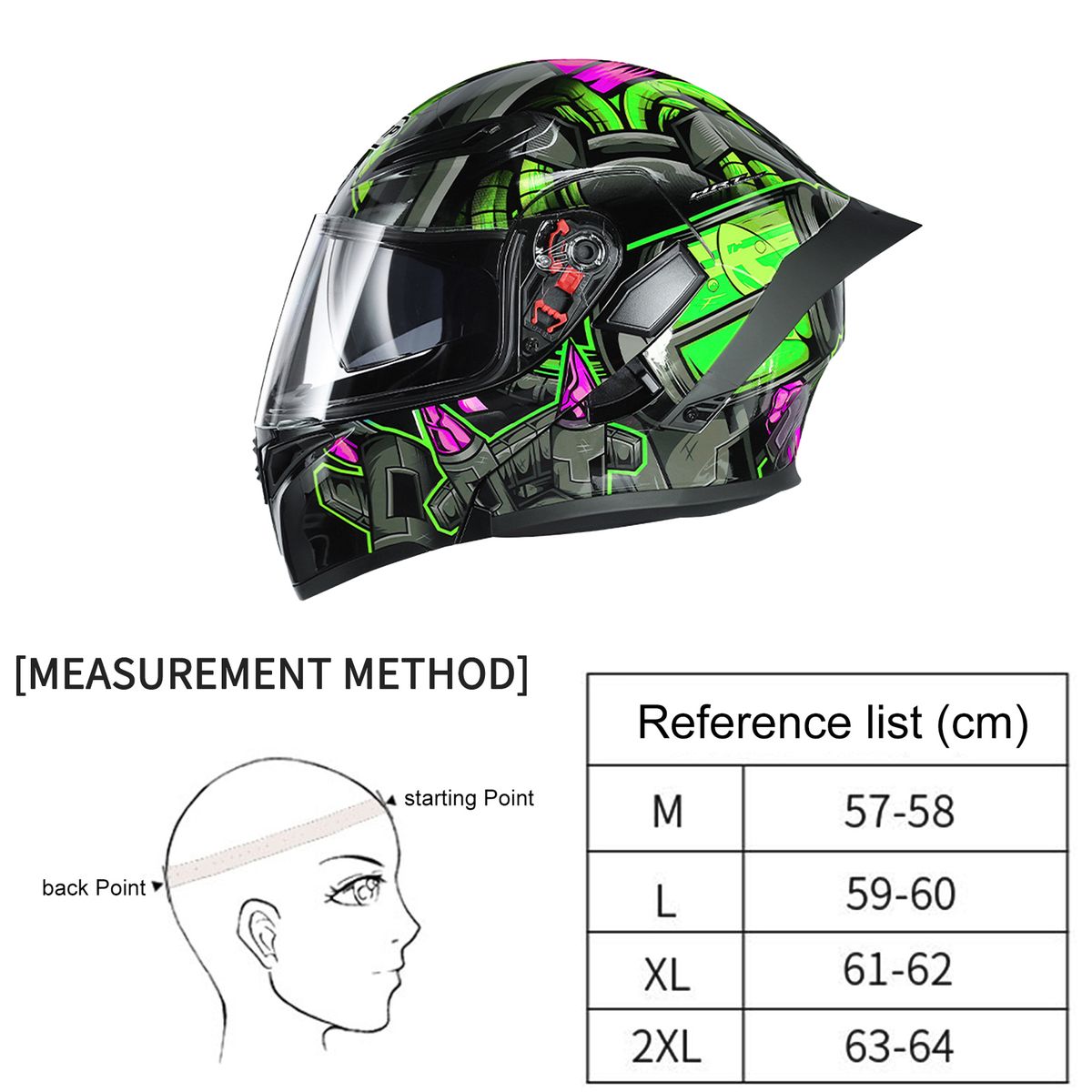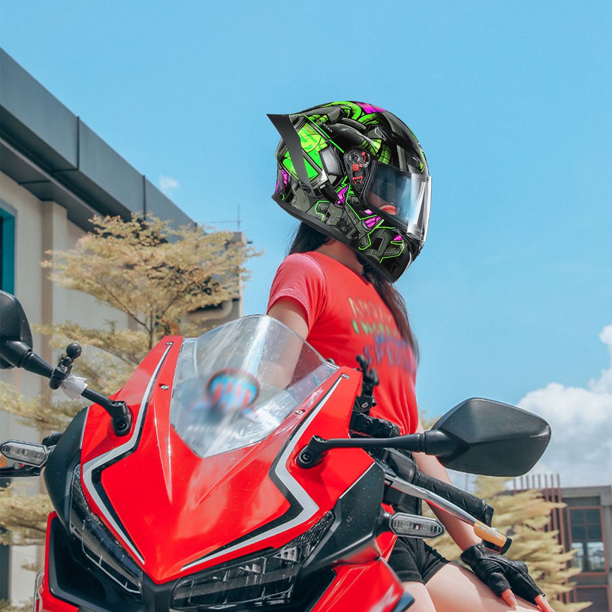 3 Ways to wear:Inner Sun Visor/Full face/Half helmet. Inner sun visor is sunshading and anti-glare, can expand your horizons; full face is wind and noise reduction; half helmet is cool and breathable, which clear your vision.