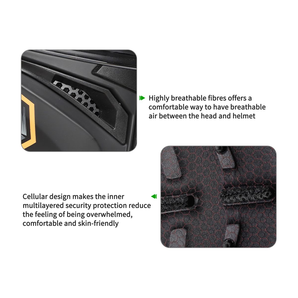 Premium Quality Materials: Brand new with good performance. Made from premium-quality ABS materials, reliable performance and superior longevity. Highly breathable fibres offers a comfortable way to have breathable air between the head and helmet, can be easy to remove and wash. Cellular design makes the inner multilayered security protection reduce the feeling of being overwhelmed, comfortable and skin-friendly.