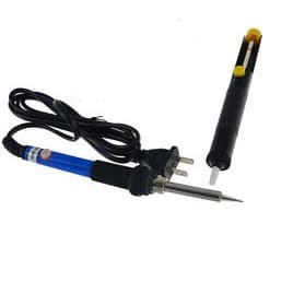 This quality soldering iron with sucker will quickly become your favorite. It features a ceramic heating element, sleeved tip and rubber grip. It's affordable, built tough, powerful, and made for lead-free solder. You'll find it in countless maker spaces, classrooms and home workshops.