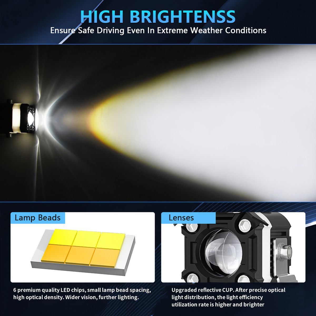 6 Modes: White light / yellow light / yellow+white light / white flashing light / yellow flashing light / yellow+white flashing light, these 6 modes meet the diversified needs for driving in foggy or normal weather. The color temperature is 6000K white light and 3000K yellow light, making your driving more comfortable.
