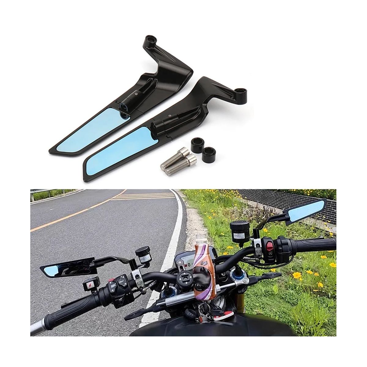 While the mirror glass holder is always the same, the fixed component is designed ad hoc for each supersport bikes for which was developed, looking for the best solution to match the relative aerodynamic results.