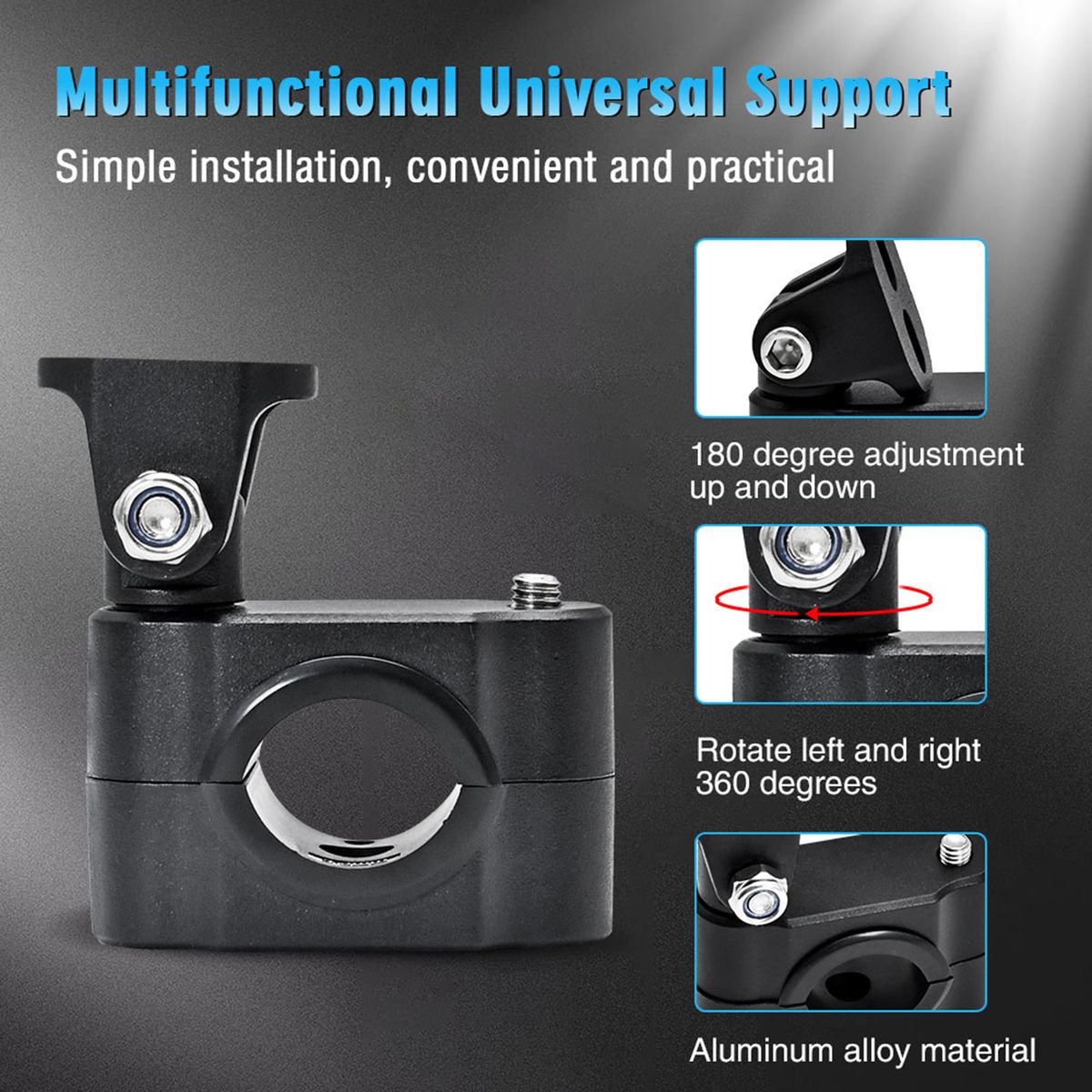 Easy to Install and 360 deg; Adjustable: The motorcycle mounting bracket is installed without drilling. 360 degree adjustment allows you to better control the placement of light.